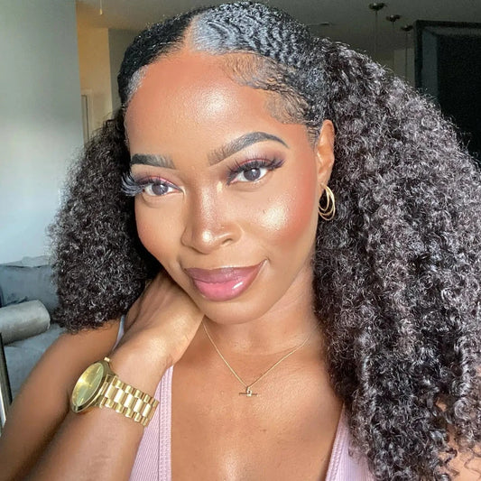 Jerry Curl / Afro Kinky Curly Glueless 100% Malaysian Human Hair Wig