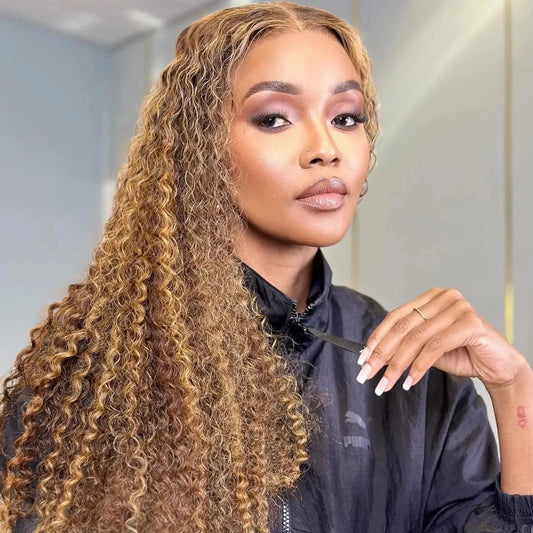 Deep Wave Highlight Honey Blonde HD Lace Front Glueless Wig 100% Human Hair Wig