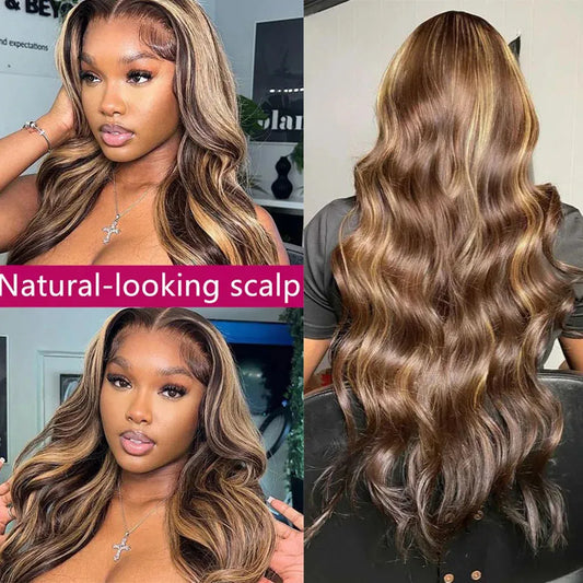 Highlight Brown Body Wave HD Lace Front Glueless Human Hair Wig