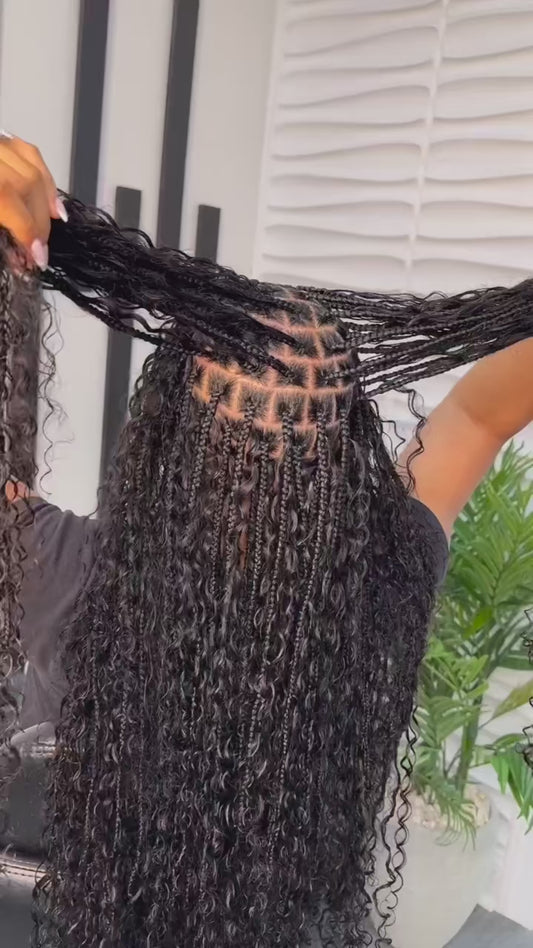 32 Inch Pre-cut Extra Long Boho Braided Box 360 Full Lace Curly Synthetic Wig