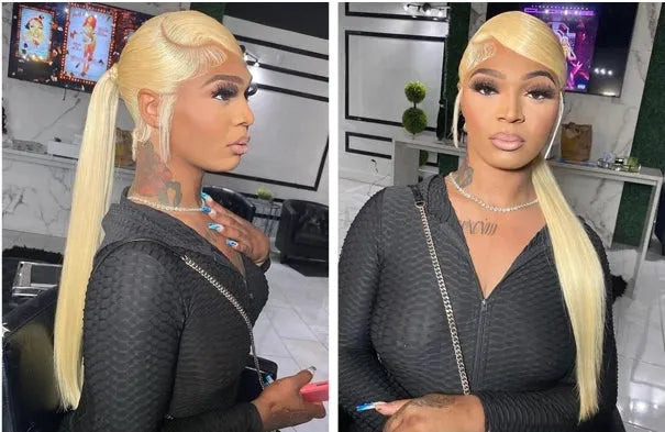 Shine with elegance using our honey blonde 613 straight HD transparent front lace wig, crafted from 100% human hair. This wig features a stunning straight texture and an HD transparent lace for a flawless, natural appearance. Perfect for those looking to make a bold style statement with a touch of glam.